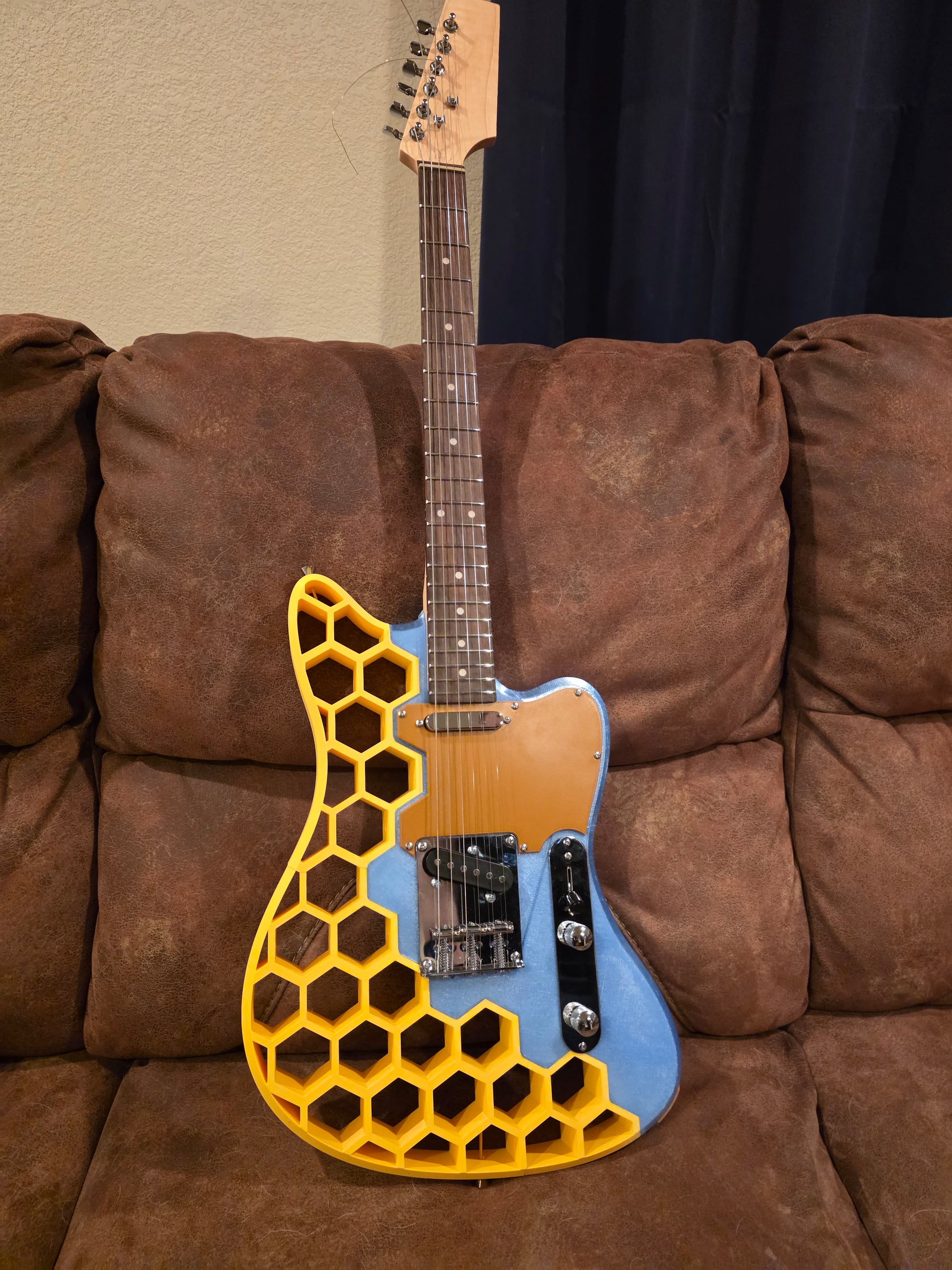 Fully functional, playable electric guitarUnleash your inner rockstar with our 3D printed electric guitar. This fully playable and functional instrument is a bold and daring addition to your collection. Crafted with innovative 3D printing technology, it's the first of its kind. Get ready to rock with style and innovation!