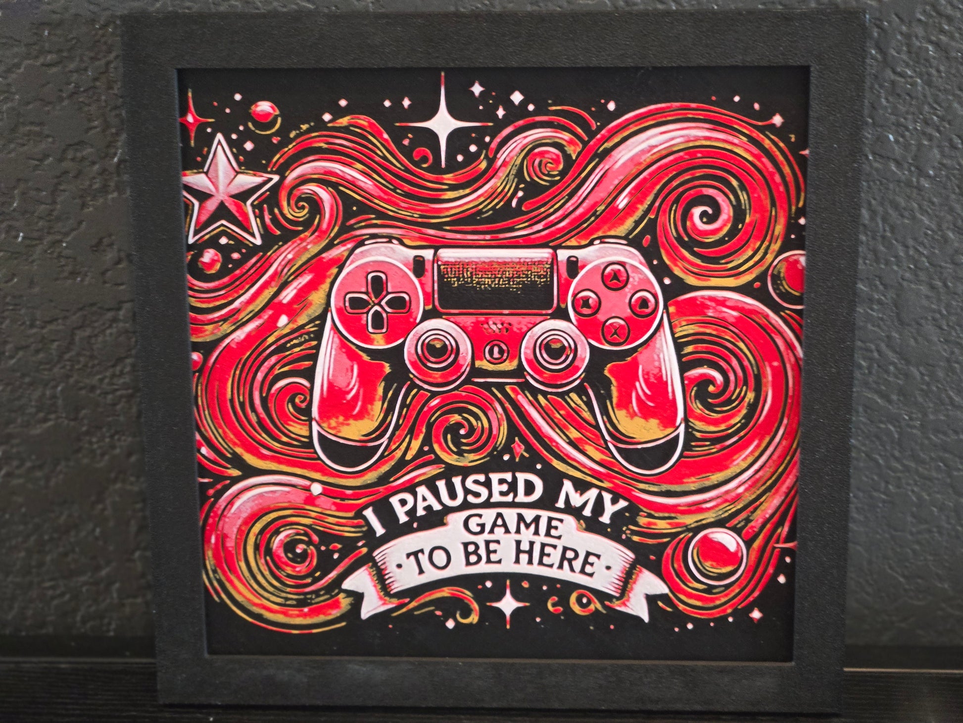 Unpause your game and level up your home decor with this 3D printed "Paused my Game" wall art. Perfect for any gamer who takes a break from their virtual world to enter the real one. Upgrade your living space and show off your playful side with this quirky and fun piece.